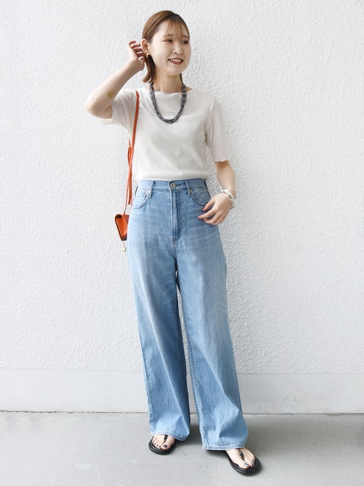 身長:164cm / 普段サイズ:38・MEDIUM / 体型:細身(骨格ウェーブ) 肩幅:なで肩・狭め / パーソナルカラー:イエベ春 【着用レビュー 】 着用アイテム:Tシャツ / 着用サイズ:ONE SIZE ■着丈:腰くらいまでの丈です。 ■サイズ感:フィットしすぎず、程よくゆとりがあります。 ■素材感:さらっとしたドライタッチな素材感です。 ■着心地:伸縮性がありとても着やすいです。1枚着としてもインナーとしても着回しやすいカットソーです。 着用アイテム:デニム / 着用サイズ:M ■ウエスト:ゆとりがありました。(ベルトが必要なサイズ感) ■ヒップ:ヒップラインは気になりませんでした。 ■レングス:かかとくらいまでの丈です。 ■素材感:やわらかいデニム素材です。 ■着心地:生地感がとてもやわらかく、穿き心地がとても良いです。春夏でもストレスなく穿ける薄手の素材感です◎