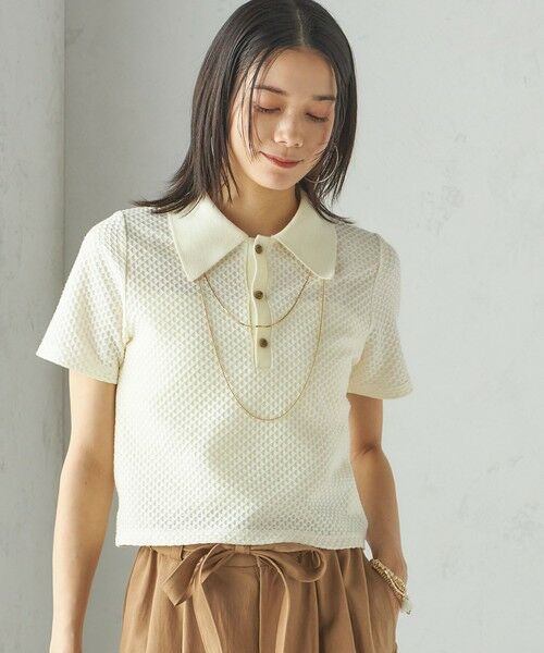 表面感のジャカード生地を使用し、スポーティになりすぎない、大人なポロに仕上がっています。