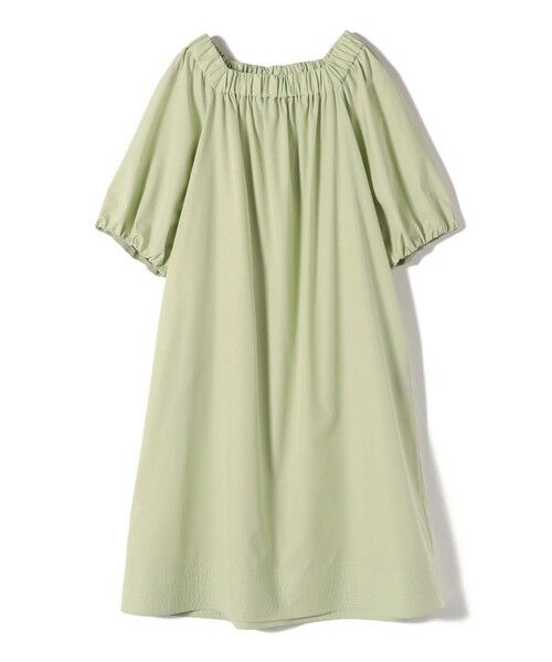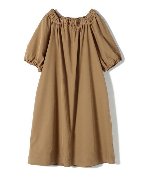 スポッと被れるサックドレスは衿周りのゴム仕様によってオフショルダーまたはハーフオフショルダーとしても着用いただけます。