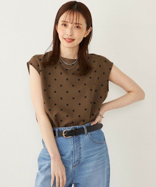ドット柄がレトロな雰囲気のフレンチスリーブブラウス。