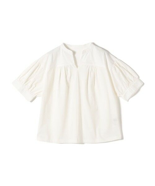 首元はスキッパーデザインですっきりと仕上げ、袖のボリュームが程よいアクセントに。