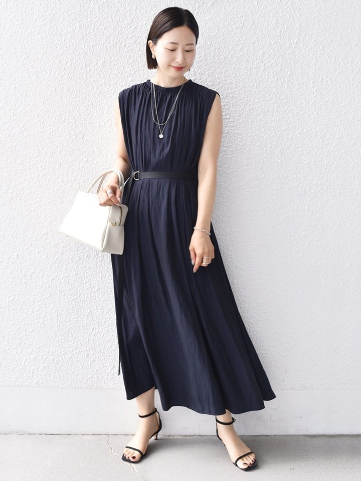 ◆身長:159cm / 体型:細身 ・骨格ウェーブ/ 肩幅:なで肩・狭め / 普段サイズ:36・SMALL / ブルべ冬◆ 【着用レビュー 】 着用アイテム:ワンピース / 着用サイズ:ONE SIZE 着丈: 足首がみえる丈感。 身巾:ゆとりがありますが、落ち感のある素材で広がりすぎずスッキリ見えます。 素材感:柔らかくなめらかな素材。 着心地:軽い着心地のワンピースでストレスフリーです。ふんわり揺れるシルエットが華やかなワンピース。付属のブラックベルトは取り外しも可能なので、気分やスタイルに合わせて外していただいても◎