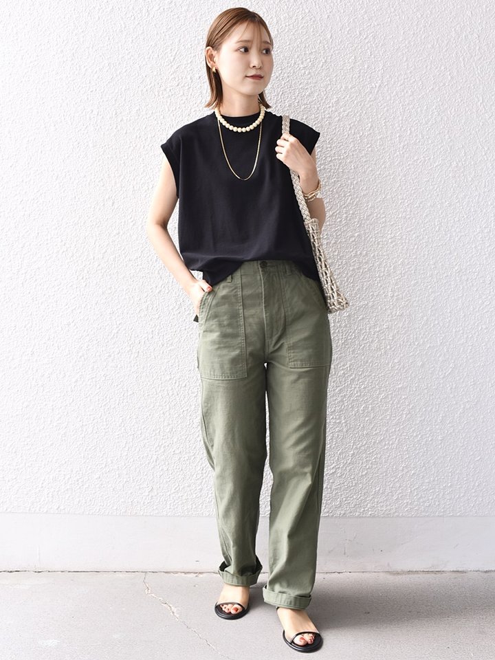 身長:164cm / 普段サイズ:38・MEDIUM / 体型:細身(骨格ウェーブ) 肩幅:なで肩・狭め / パーソナルカラー:イエベ春 【着用レビュー 】 着用アイテム:カットソー / 着用サイズ:ONESIZE ■着丈:腰くらいまでの丈です。 ■サイズ感:全体的にゆったりとしています。 ■袖丈:肩回りが隠れる、フレンチスリーブのような袖丈です。 ■素材感:表面感がなめらかで綺麗見えする素材感です。 ■着心地:薄手のカットソー素材で暑い日でもサラッと着用できます。シンプルで着回しが利くので1枚あると重宝しそう◎ 着用アイテム:パンツ / 着用サイズ:36 ■ウエスト:ほどよくゆとりがありました。 ■ヒップ:ヒップラインは気になりませんでした。 ■レングス:かかと下くらいまでの丈です。裾を折り返すのも可愛いです。 ■着心地:股上が深めで安心感のある履き心地です。シーズンレスで使いやすいパンツです。