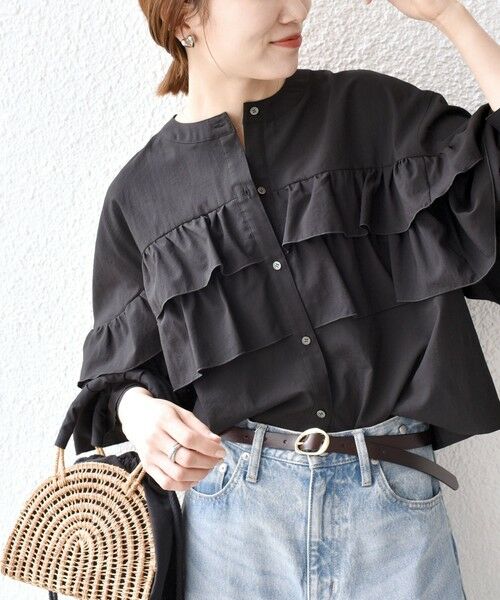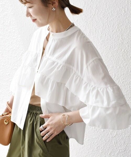 2段のティアードフリルが入った大人フェミニンな印象のブラウス。