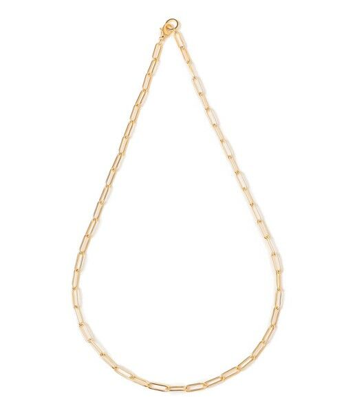 細身の楕円型チェーンが程よいボリューム感で、カジュアルになりすぎず上品さも感じられるチェーンネックレス。