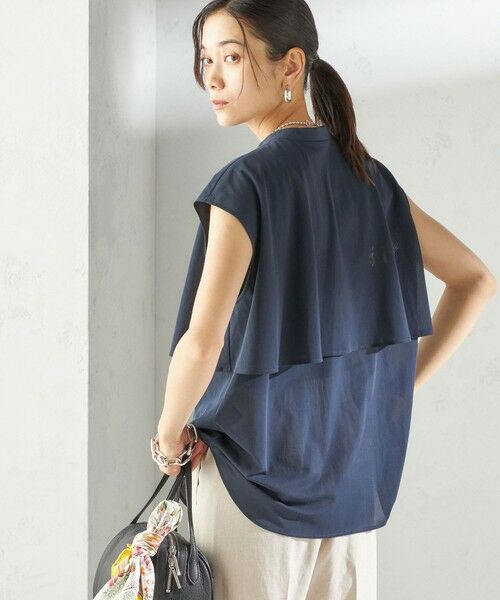 ケープ風のデザインでボディラインをさりげなくカバーする夏ブラウス