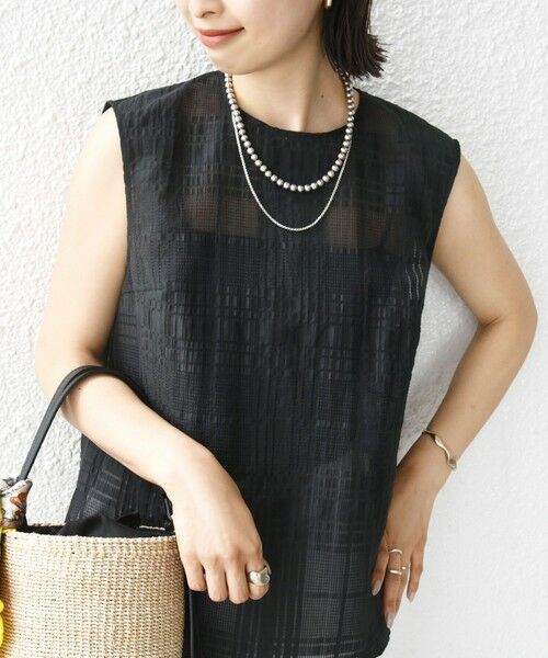 シアーチェックジャカードのノースリーブブラウス。