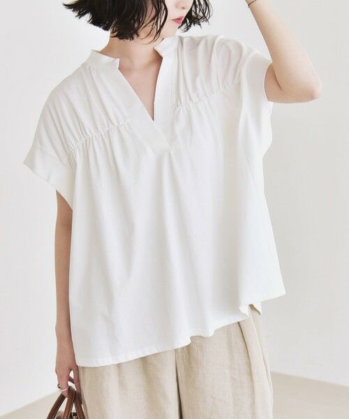 quaranciel:〈手洗い可能〉ギャザー スキッパー バンドカラー プルオーバー