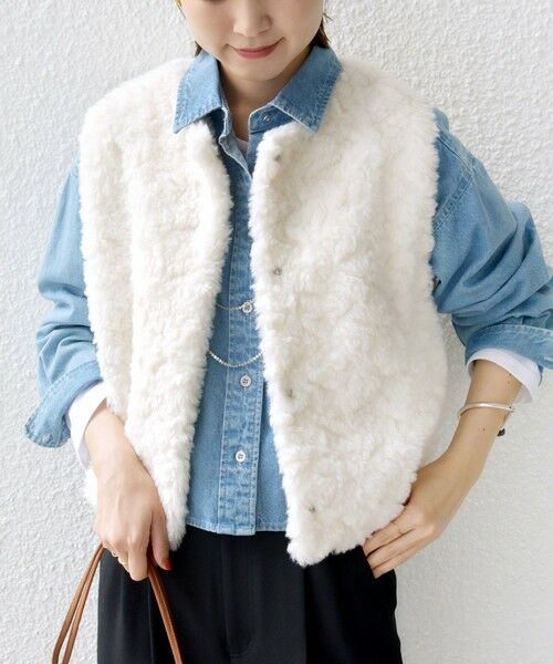 ランダムな短めの毛足で軽く、ファーのフェミニンでリュクスな印象を程良くカジュアルダウン。