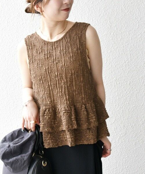 SHIPS any:〈手洗い可能〉フラワー メッシュ 2WAY ティアード ペプラム ベスト