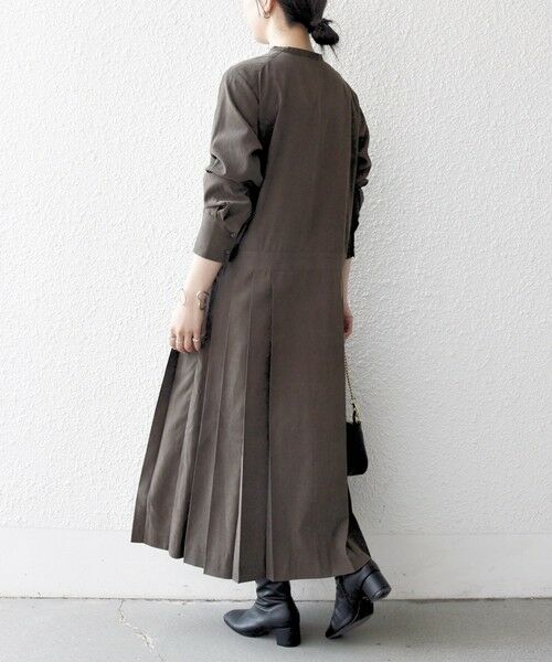 サイドのプリーツデザインがポイントのシャツワンピース。