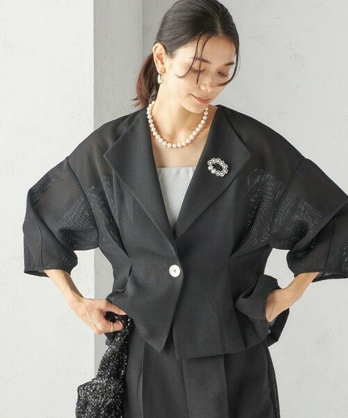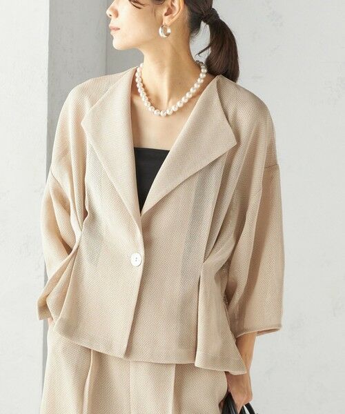 ウエストのタックから広がるフレアがスタイルアップしてくれる短丈のメッシュジャケット。