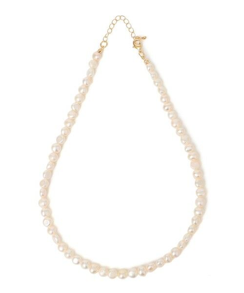 さりげなく華やかさを添える、約8ミリの淡水パールを使用したネックレス。