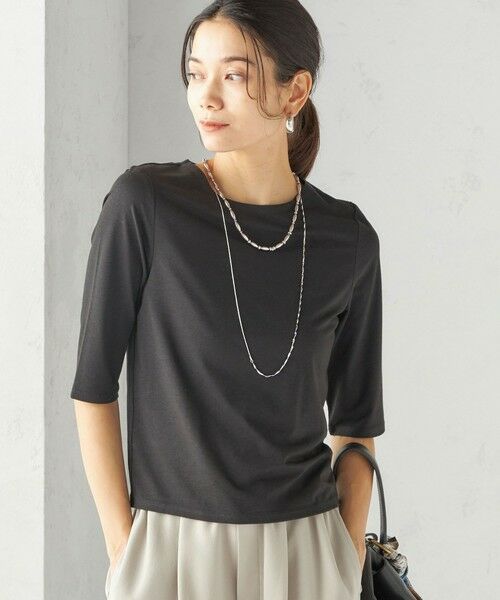 程よい抜け感のあるボートネックラインとコンパクトなサイズ感がシルエットポイントになったカットソー。