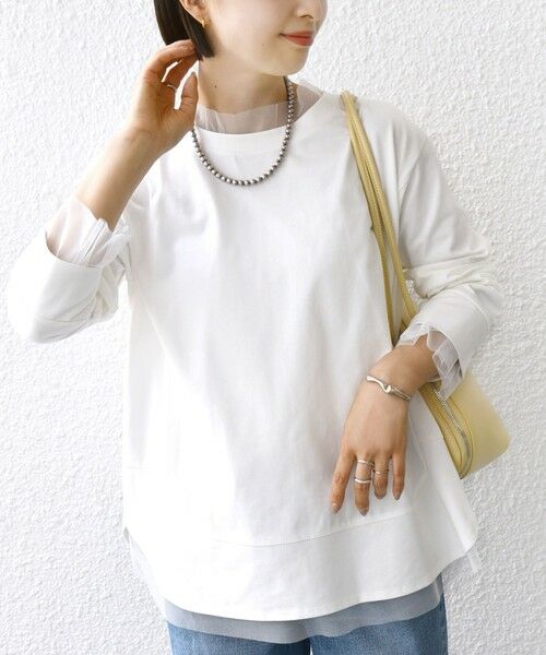 さりげなく仕込まれたチュールがアクセントになった1枚着カットソー