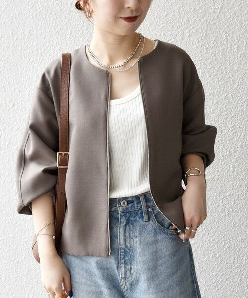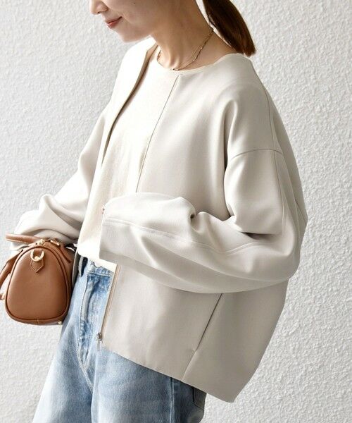 オンオフ問わず活躍する、ブルゾン仕立てのノーカラージャケット。
