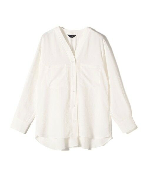 羽織としても、ボタンを留めてブラウス感覚でも着用可能なVネックシャツ。