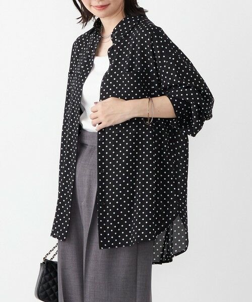 上品な透け感で大人が着やすいドット柄シャツ。