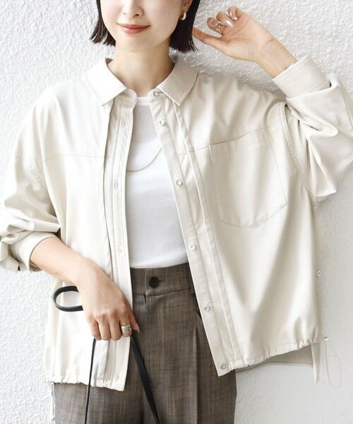 ポリエステル スエード 裾 ドロスト シャツ 羽織(品番:311-16-0186)