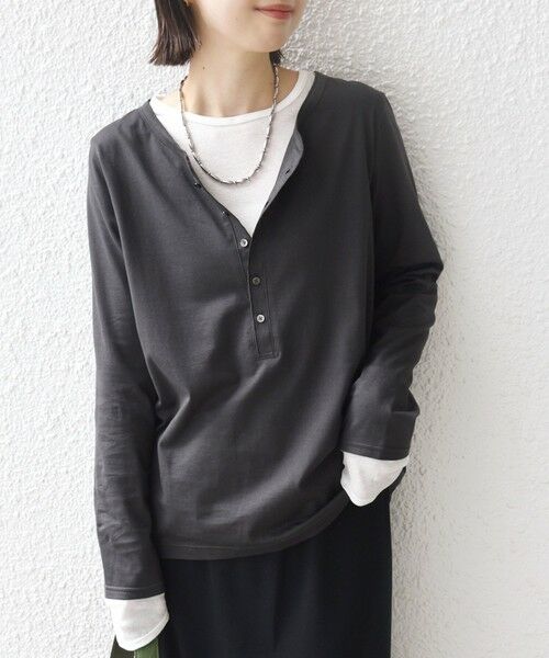 一枚でレイヤード感が楽しめるヘンリーネックプルオーバー