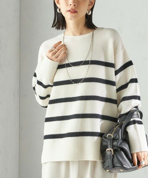 デニムやワイドパンツなど、カジュアルなアイテムを合わせてもバランス良く決まる万能ニットです。