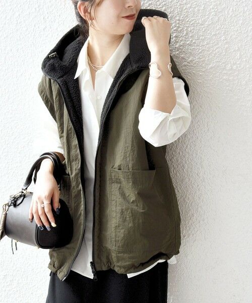 ナイロン面とボア面の2WAYでお使いいただける、リバーシブル仕様のベスト。