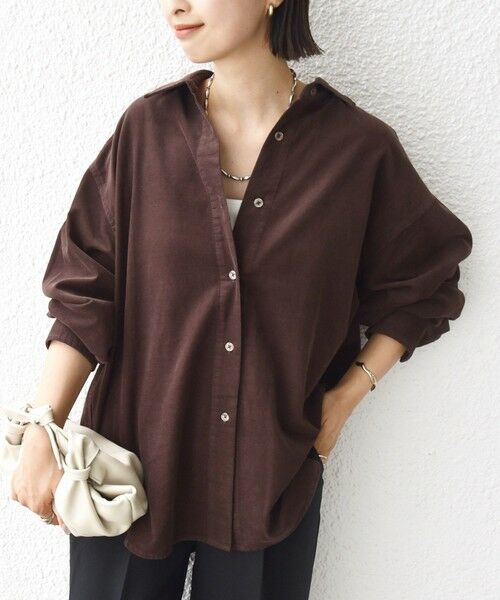 細コーデュロイで落ち感のある素材と後ろ身頃にギャザーを施し、袖は丸みのあるカフスで女性らしい柔らかさをプラスしました。