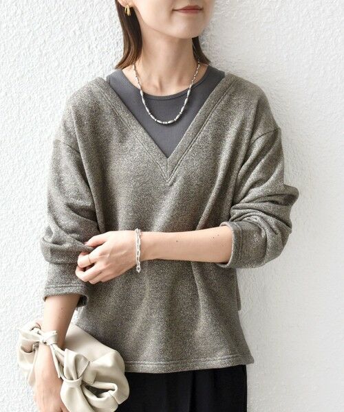ラメ入りの裏毛や程よくヘルシーな肌見せが、大人の女性らしさを引き出してくれる1枚です。