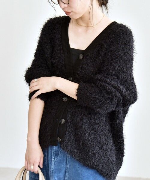 ふんわりとした長めの毛足が魅力のVネックカーディガン。