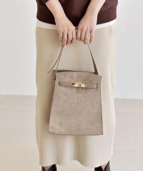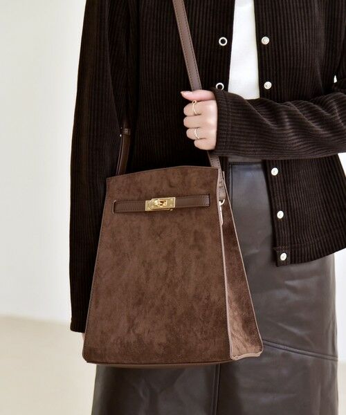 フロントにゴールドの金具と季節感のある素材がポイントのショルダーバッグ。