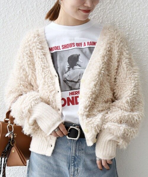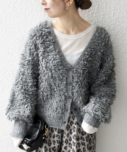 ふわふわとしたループ編みがポイントのVネックニットカーディガン。
