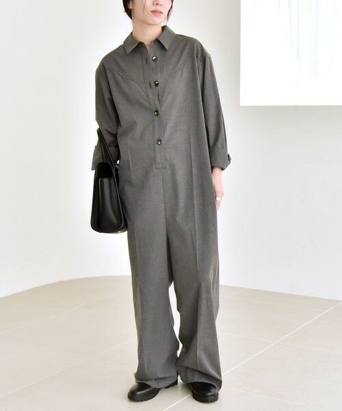シャツカラーのロングスリーブオールインワン。
