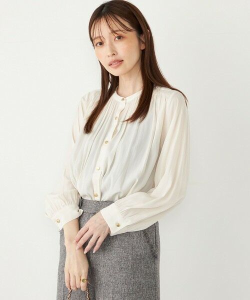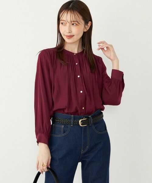 女性らしいとろみと上品な光沢感が魅力のシャツブラウス。