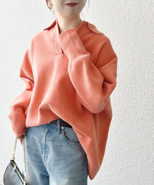 クラシックなポロカラーが印象的なプルオーバーニット。