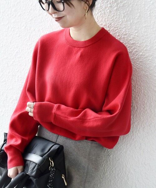ややルーズなサイズ感とドルマンスリーブのデザインが、リラックス感のある大人カジュアルな印象に。