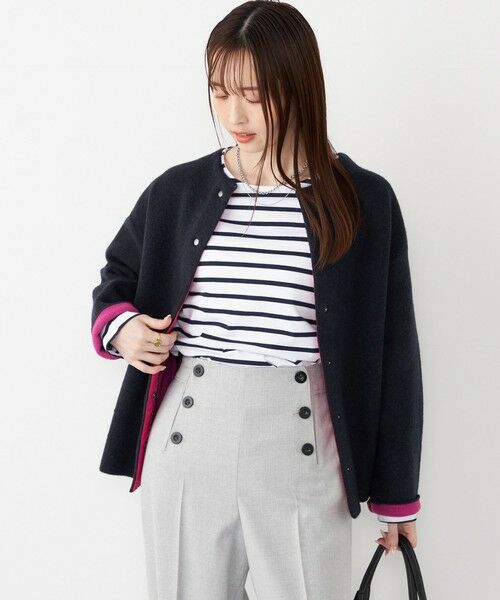 長すぎない丈感なので、ボリュームのあるボトムともバランスよく着こなしていただけます。