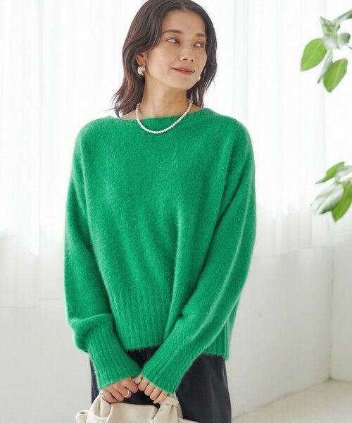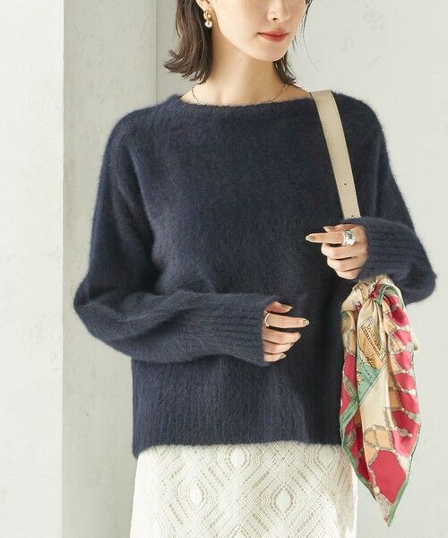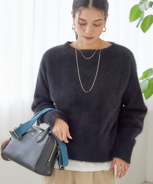 短めのワイドなサイズ感で、抜け感のある襟ぐりのニットプルオーバー。