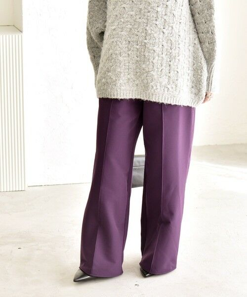 すっきりと見えるパンツなので、ざっくりとしたニットやオーバーサイズのトップス合わせがおすすめ。