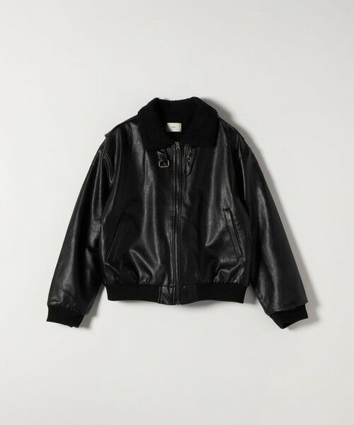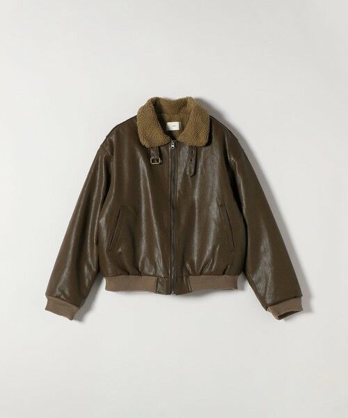 表面は柔らかくツヤ感のある合皮素材、裏面はふんわりとしたボアがアクセントになるショートブルゾン。