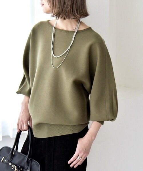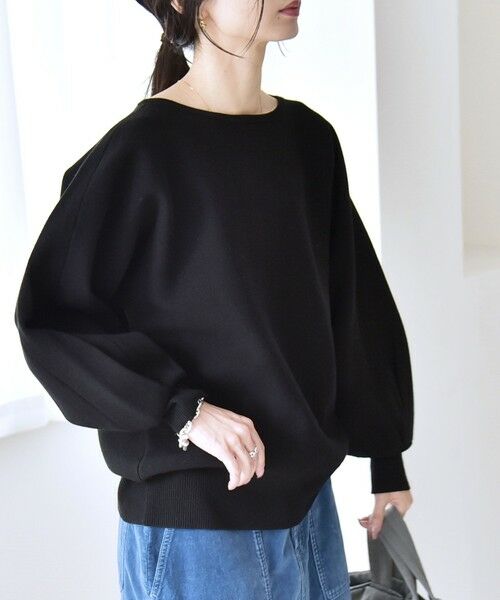 ふんわりとしたバルーンスリーブがポイントのニット。