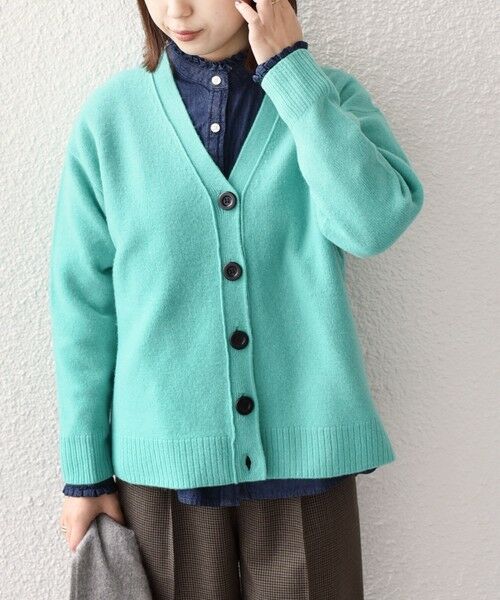 カシミヤのような風合いが魅力のVネックカーディガン。