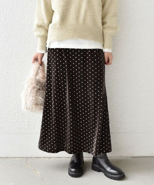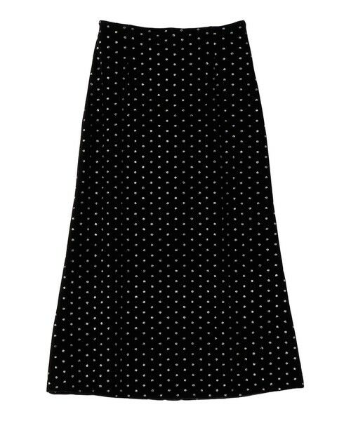 ベロア生地に施したグリッターブリントが、華やかで女性らしい印象を与えるスカート。