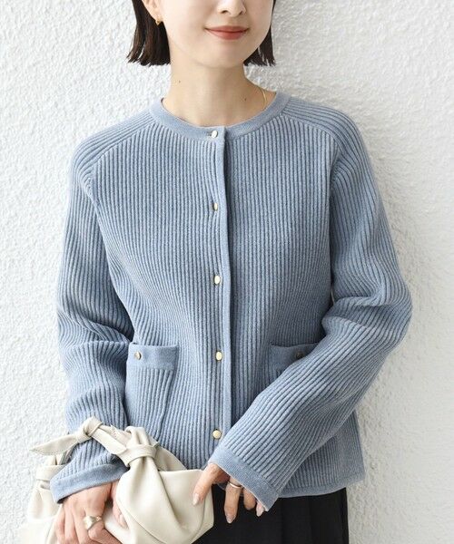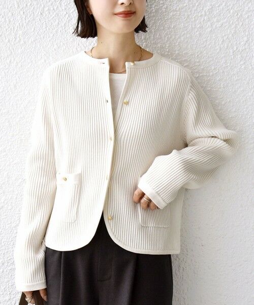 ジャケットとカーディガンの中間のような、抜け感ときちんと感のあるニットジャケットです。