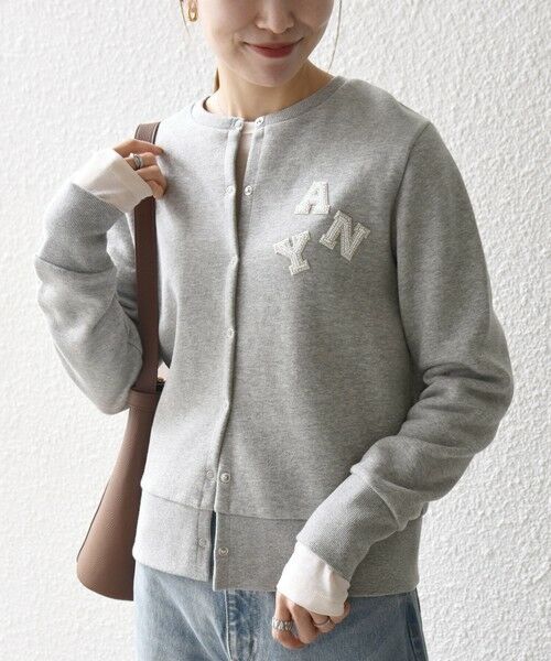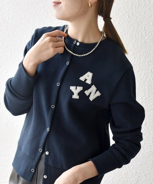 SHIPS any:〈洗濯機可能〉裏起毛 ビジュー コンパクト スナップ カーディガン