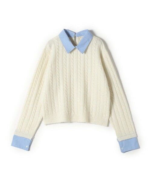 シャツをレイヤードしているようなデザインのケーブルニット。
