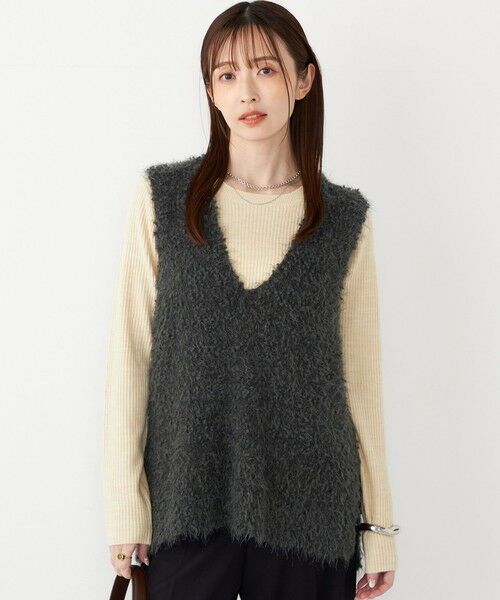 存在感のあるベストがスタイリングのアクセントになり、こなれたレイヤードスタイルを楽しんでいただけます。