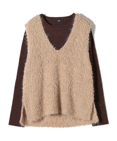 表面感のあるポコポコ素材が魅力のベスト×ニットセット。