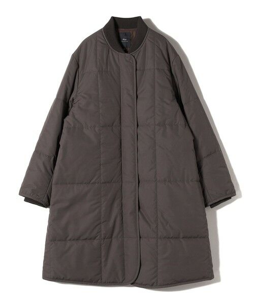 MA-1のようなリブ衿のコートは大きな格子のキルティングが目をひくAラインシルエットのコートです。