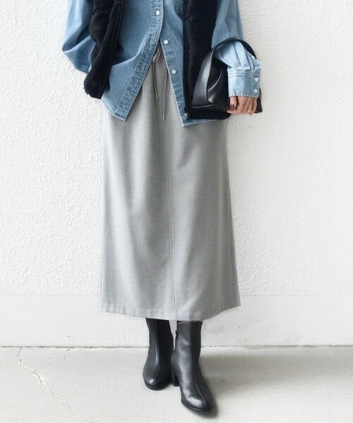 ウエストのドロストデザインが、程よい抜け感とリラックス感がある大人のタイトスカート。