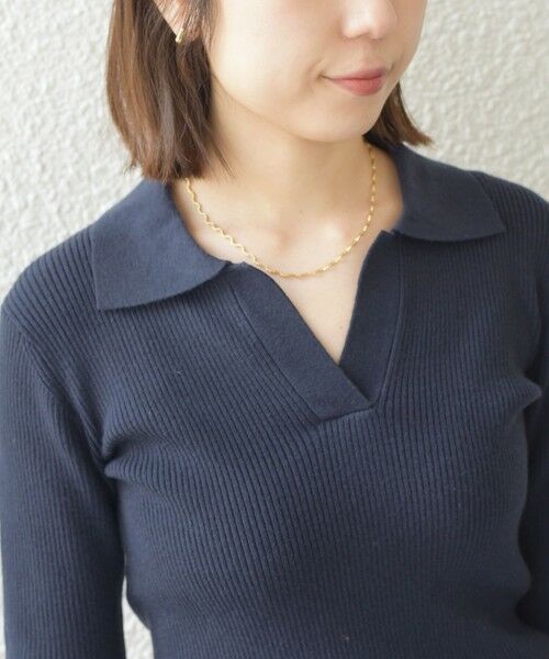 細めのチェーンが女性らしい華奢な印象を与えつつ、ウェーブデザインがさりげない個性をプラス。